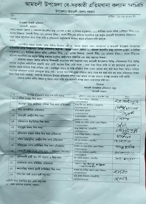 আমতলীতে বিভিন্ন এতিমখানায় গিয়ে চার সাংবাদিকের চাঁদাবাজি, প্রতিকার চেয়ে ইউএনওর বরাবরে ভূক্তভোগীদের অভিযোগ